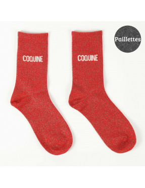 Ces chaussettes sont pour celles qui aiment ajouter une touche espiègle et pleine de caractère à leur style. Avec l'inscription "Coquine", elles font un clin d'œil à une personnalité pleine de charme, de malice et un peu de séduction. Un accessoire fun et audacieux pour toutes celles qui assument leur côté coquin.