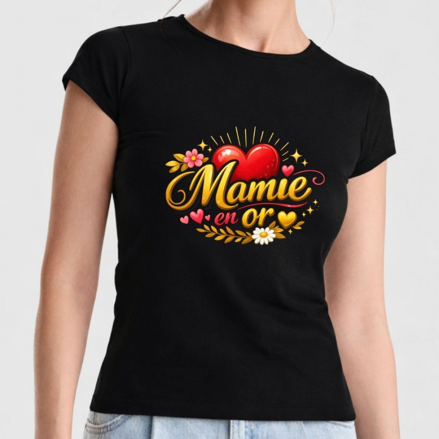Le message "Mamie en Or" est plus qu'une simple inscription : c'est une déclaration d'amour et de reconnaissance. Qu'il soit porté fièrement lors des réunions de famille, des sorties décontractées ou simplement à la maison, ce T-shirt est un hommage chaleureux à l'amour et au soutien inconditionnels des grands-mères. C'est le cadeau idéal pour la Fête des Mères, un anniversaire ou juste pour lui dire merci. Offrez-lui un vêtement de haute qualité qui lui rappellera à quel point elle est spéciale.