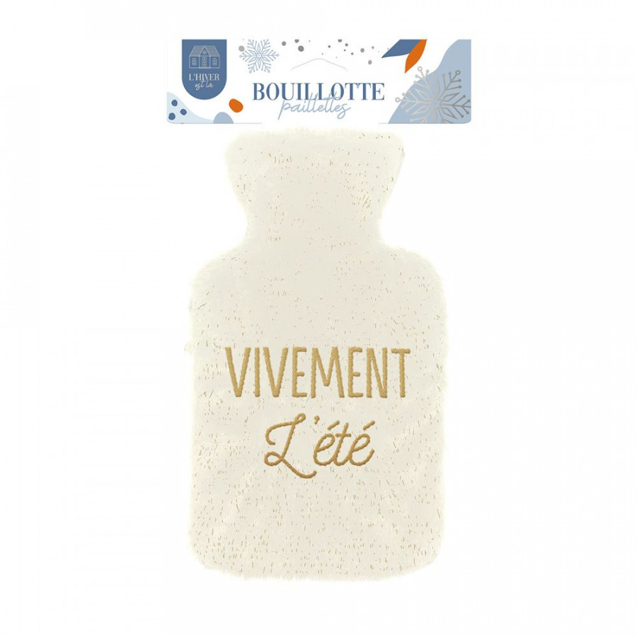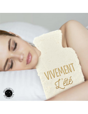 Cette bouillotte beige pailletée à la mention brodée "vivement l'été" sera le cadeau parfait pour vous procurer chaleur, douceur et bien être.