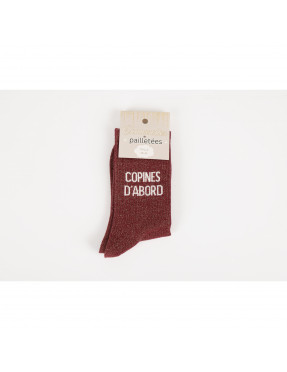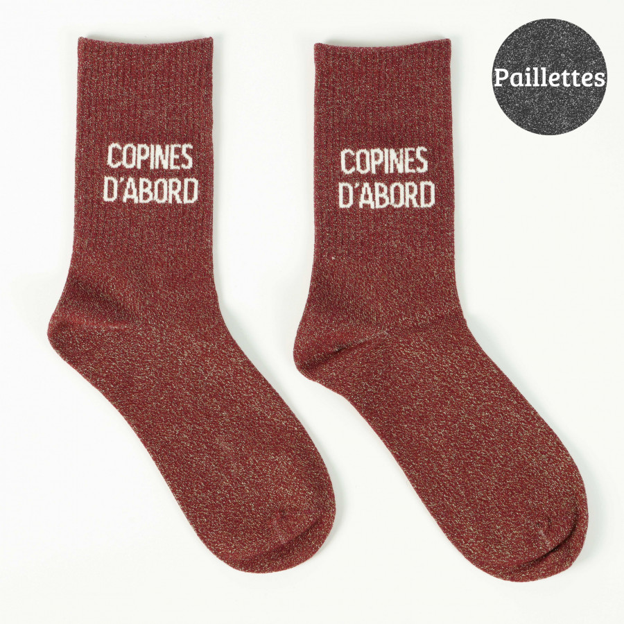 Ces chaussettes sont parfaites pour l’amie qui passe toujours en priorité dans ton cœur. Avec l'inscription "Copine d'abord", elles affichent clairement que cette amie est une priorité dans ta vie, prête à tout pour elle. Une manière originale et chaleureuse de lui montrer à quel point elle compte.