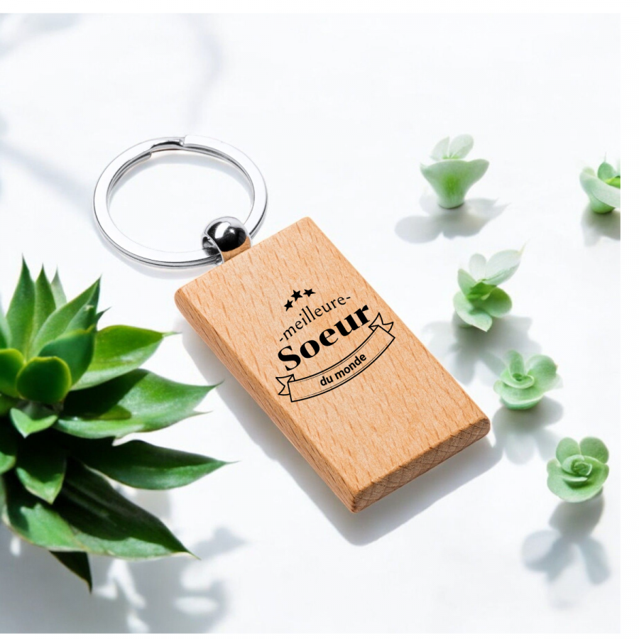 Porte-clé rectangle en bois Meilleur soeur du monde