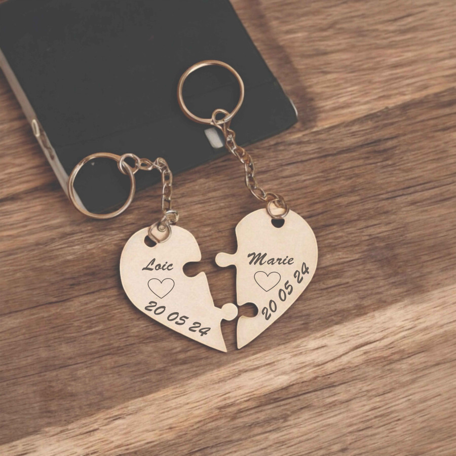 Porte-clés puzzle en forme de cœur personnalisable Prénom et Date