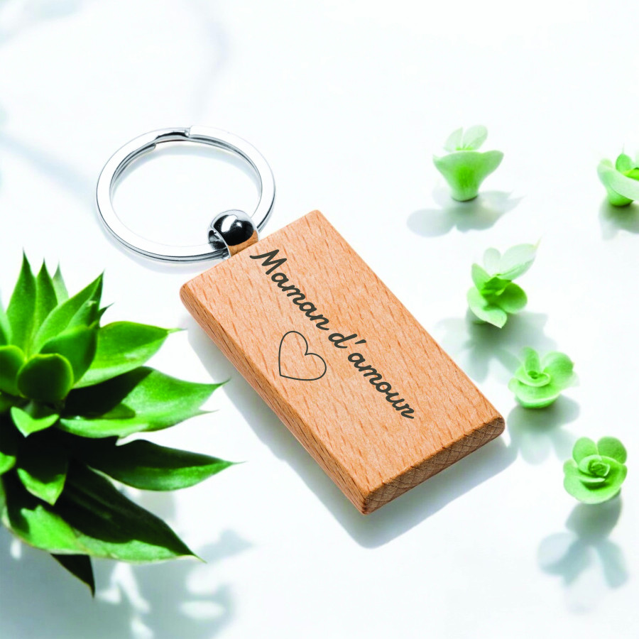 Offrez ce porte-clés en bois gravé à votre maman adorée. Avec son design simple et élégant, il est parfait pour exprimer votre amour au quotidien.