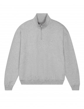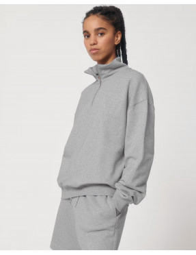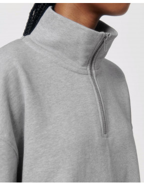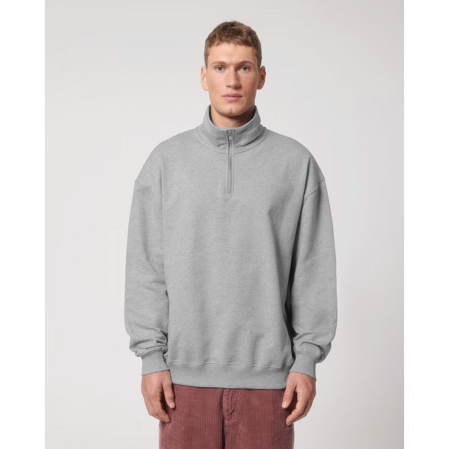 Sweat Trucker Col Zippé Oversize Coton Bio - Gris