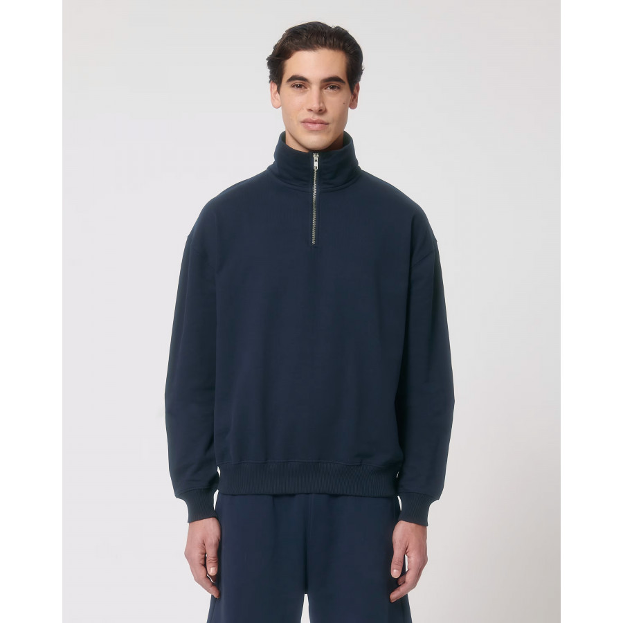 Affirmez votre style avec ce sweat col zippé trucker bleu marine, coupe oversize. Une pièce intemporelle qui allie confort et sophistication. Son design minimaliste et sa coupe légèrement ample offrent une allure moderne et décontractée, parfaite pour toutes les occasions.