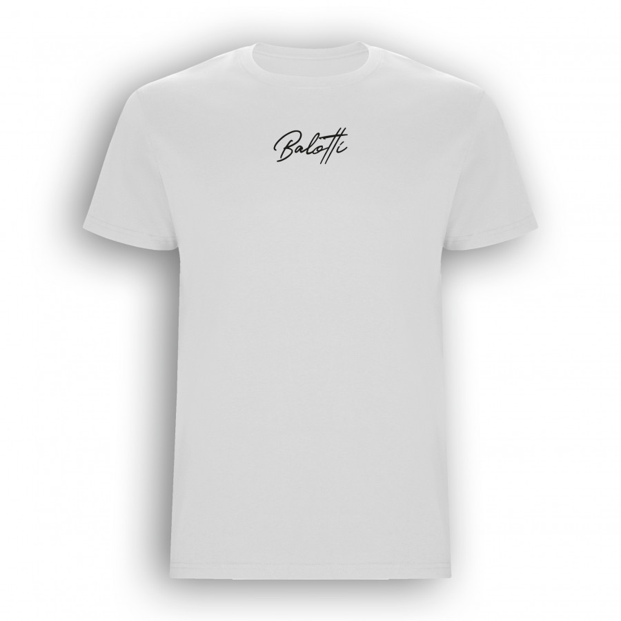 Optez pour un style sobre et raffiné avec ce t-shirt blanc signé "Balotti". Son design épuré, sublimé par une inscription calligraphique discrète sur la poitrine, en fait une pièce polyvalente et intemporelle.
